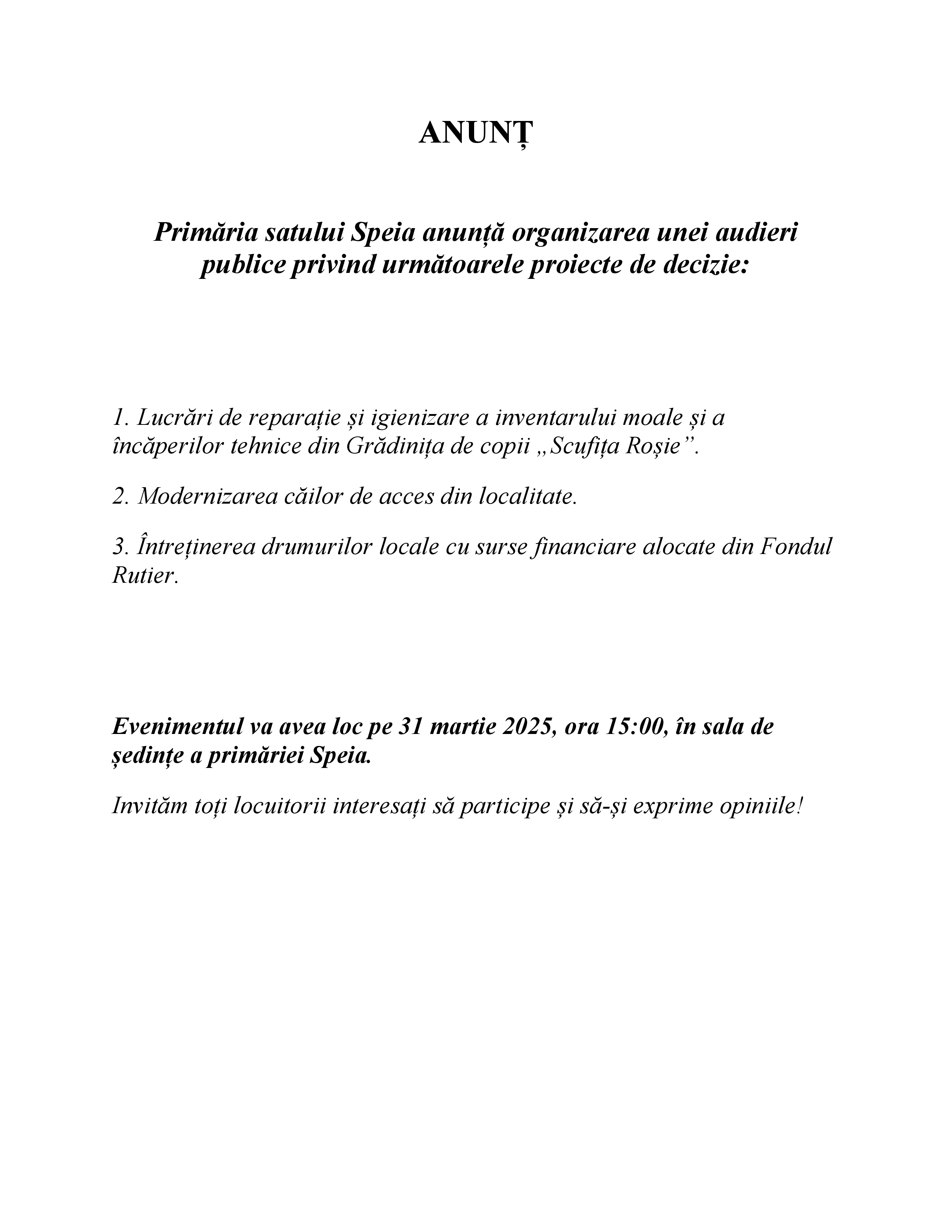 Anunțuri / Știri