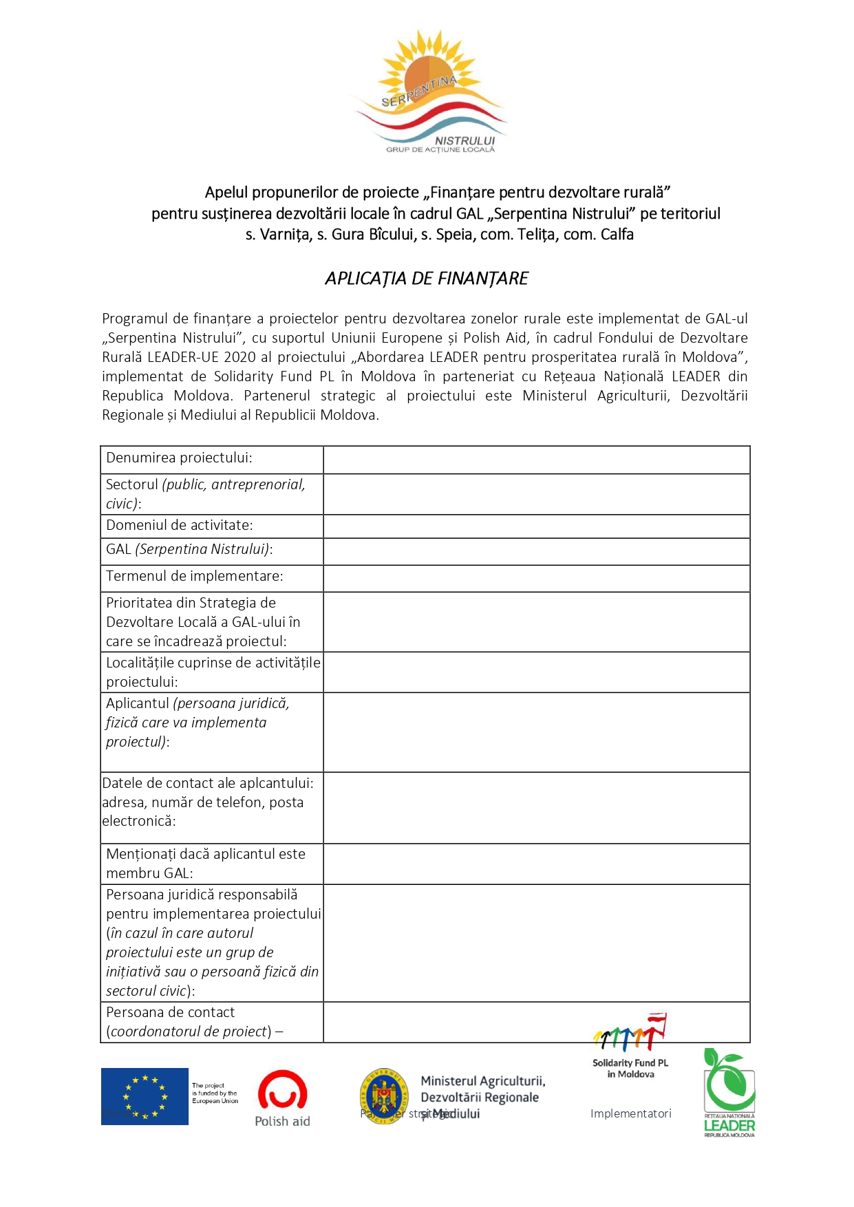 APLICAȚIA DE FINANȚARE